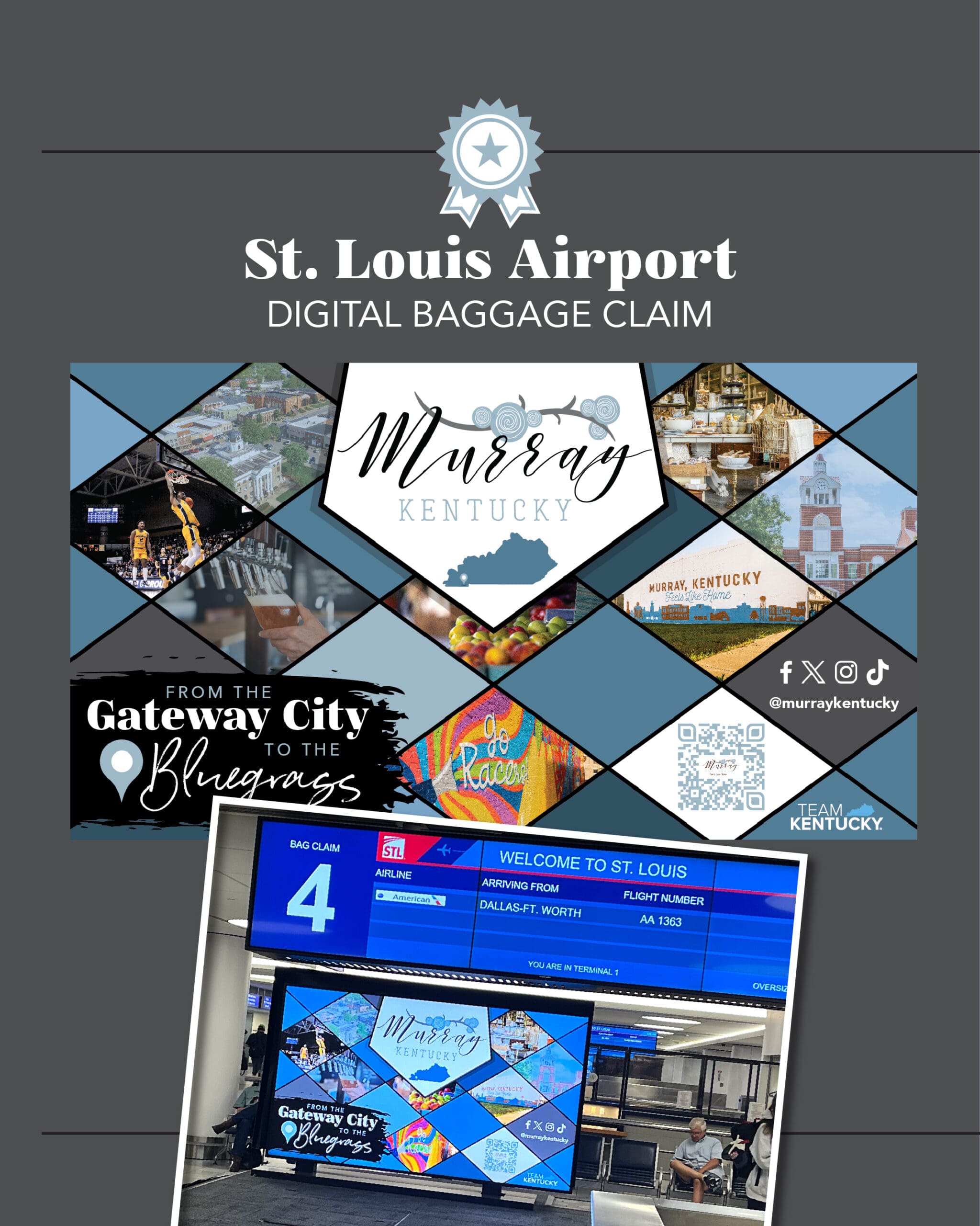The 2024 Official Murray Visitor Guide and St. Louis Airport Digital Baggage Claim each won bronze! I’m always so proud and excited to be a part of their vision and creativity in the tourism industry! Designing the Visitor Guide is always one of my favorite projects of the year and they are just a joy to work with! The Murray CVB team understands the importance of design and branding to attract visitors and promote the unique charm and rich history of Murray.