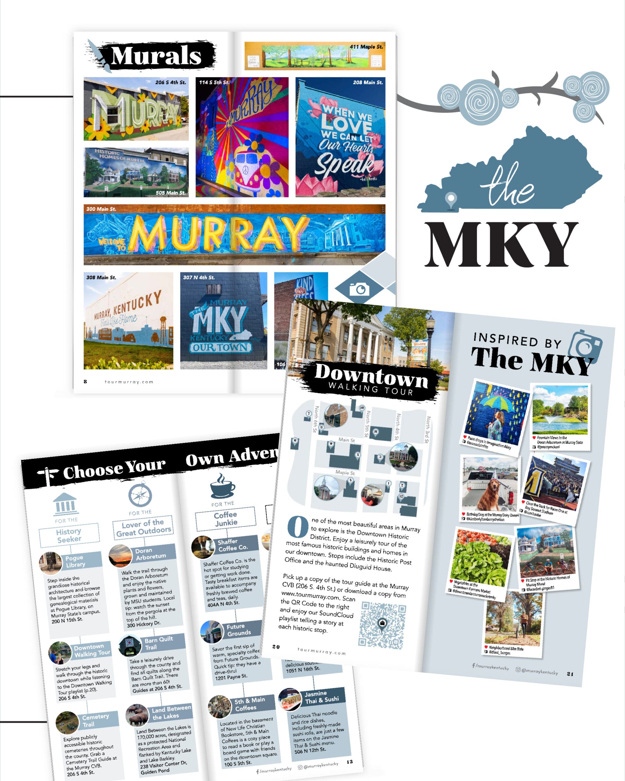 Below are the winning designs. I developed this campaign with the diamond shapes to showcase the wide variety of landmarks and experiences in Murray. I wanted a clean, organized way to display multiple images that tell the story of Murray, Kentucky. Utilizing images to catch attention in an airport, on a brochure rack, or a magazine, because a picture is worth a thousand words!